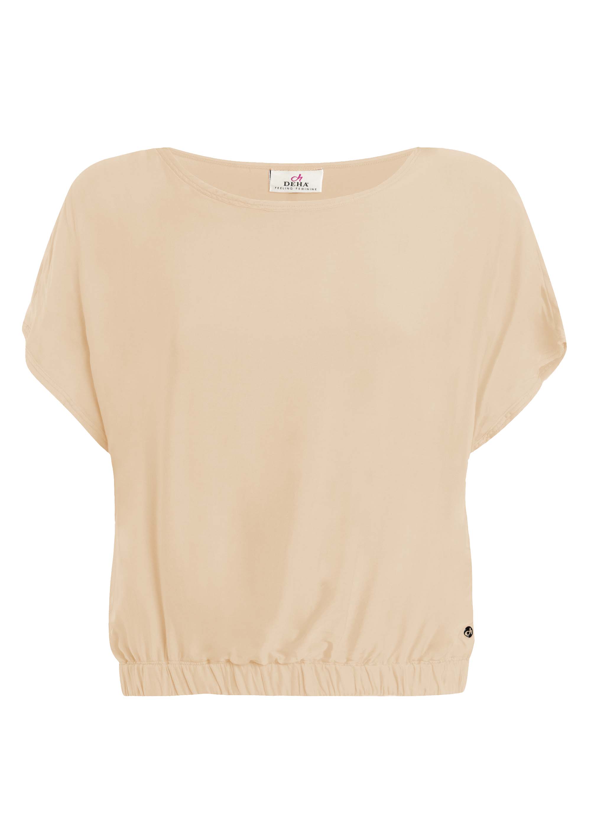 Tricoul din matase si vascoza DEHA este o imbinare ideala de materiale fine si vaporoase. Primul strat devine a doua piele datorita senzatiei foarte placute pe care o simti la purtare. Partea din fata a topului este invaluita in matase si vascoza oferind un aer feminin si delicat.
