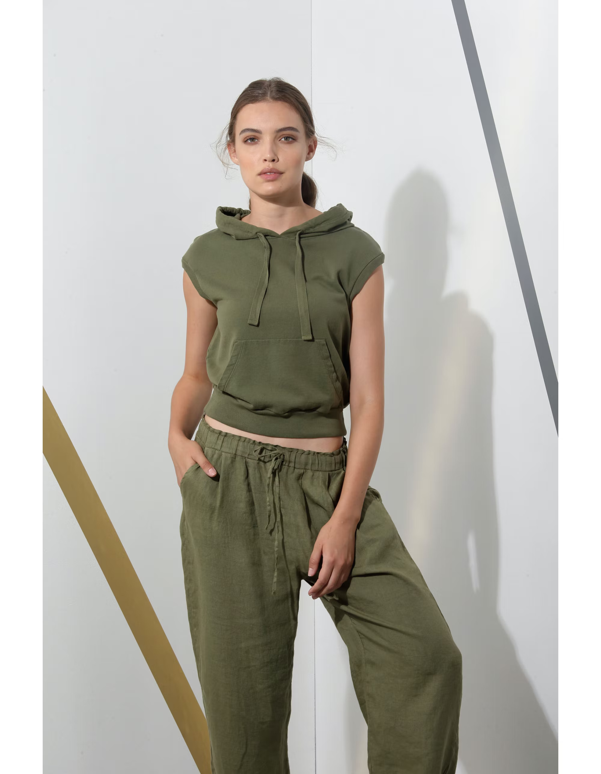 Materialul este bumbac organic, croi slimfit, gluga ajustabila, marsupiu.