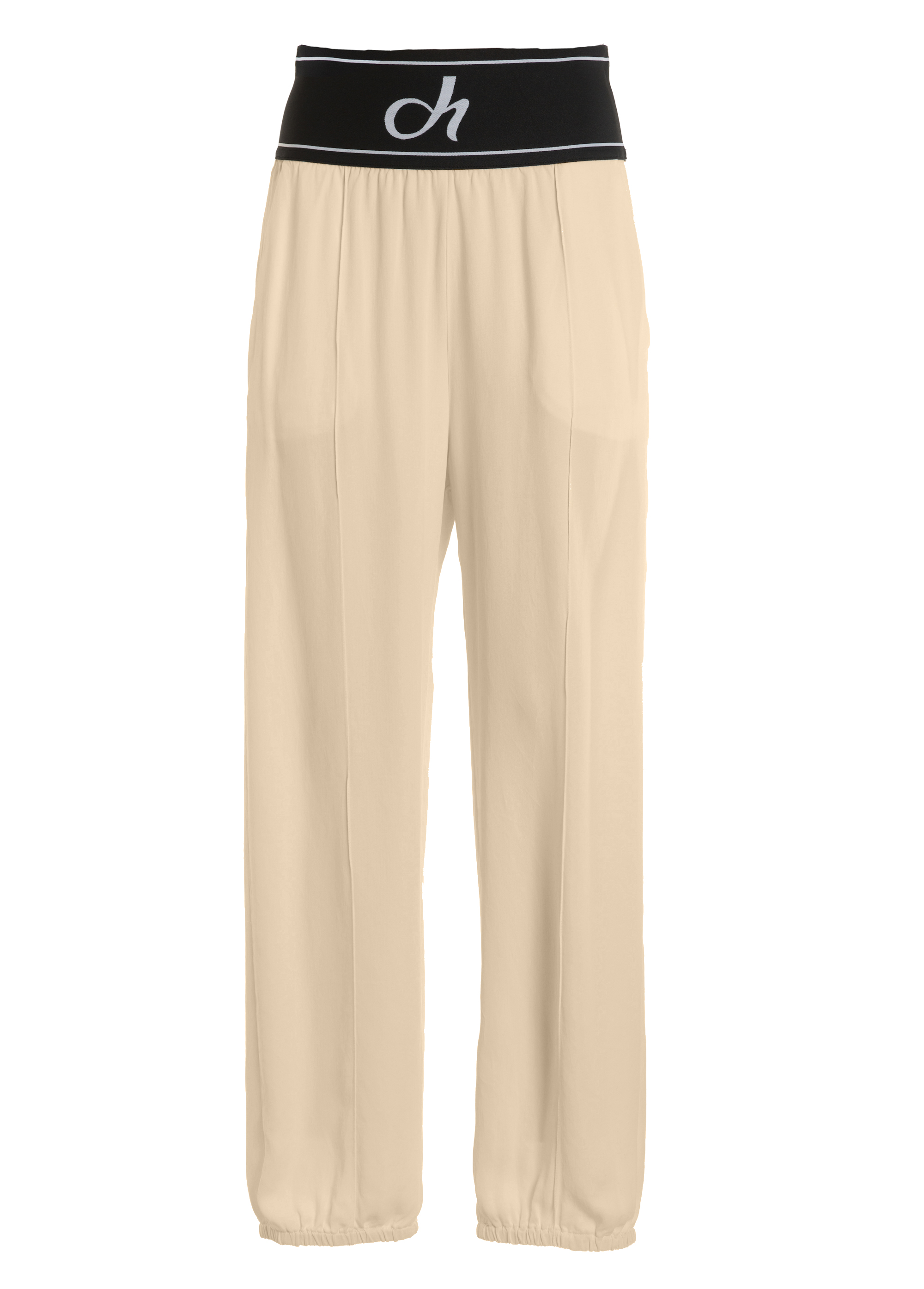 Pantalonul DEHA Jogger sunt confectionati din vascoza fiind un element central al tinutei sport. Contrastul dintre braul elasticizat si material pune in valoare talia. Acest pantalon ofera libertate de miscare datorita croiului lejer si da o nota feminina delicata datorita materialului fin.
