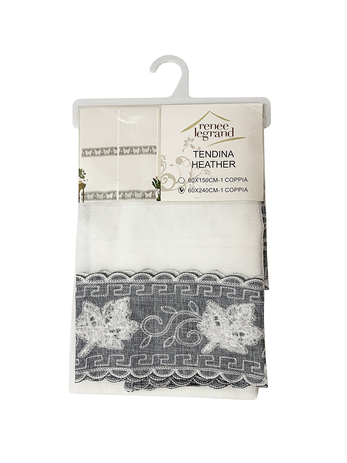 Perdelele Heather se deosebesc prin textura diafana si a modelului decorativ aplicat. Acestea sunt finisate la capete si pot fi montate imediat cu sistem de prindere pe bara. Perdelele Raissa se potrivesc in living datorita gradului de opacitate redus care permite intrarea luminii naturale intr-un mod delicat Aceste perdele dau un aer rafinat datorita broderiilor in forma de fluture din partea superioara.