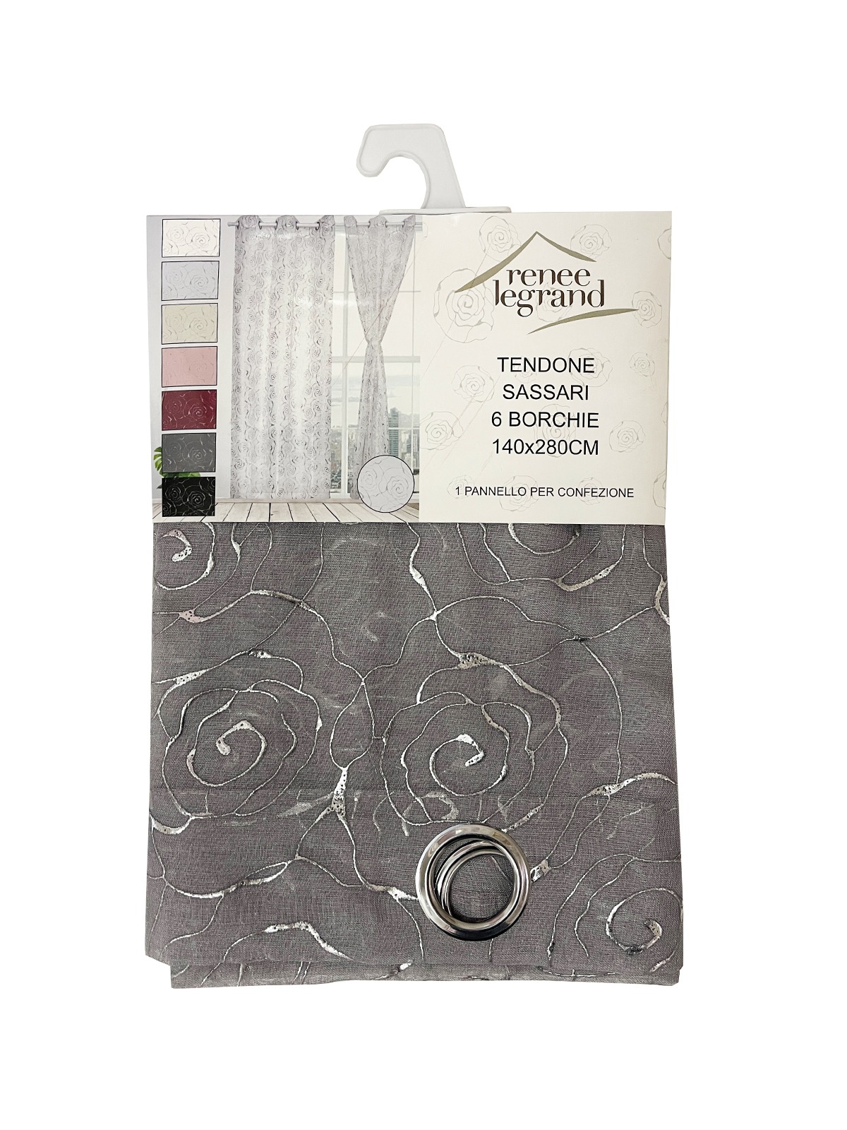 Perdelele Sassari se deosebesc prin nota de eleganta pe care o ofera incaperii datorita sistemului de prindere in inele, a texturii diafane si a modelului decorativ cu trandafiri argintii. Acestea sunt finisate la capete si pot fi montate imediat. Perdelele Sassari se potrivesc in dormitor dar si in living ele oferind o atmosfera extraordinar de eleganta datorita lungimii pana la podea.