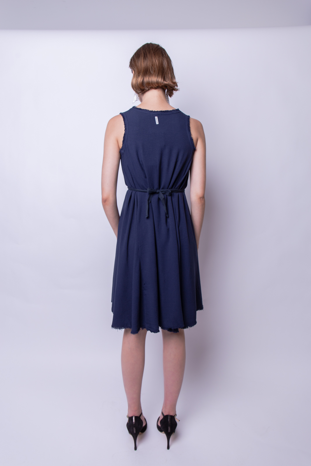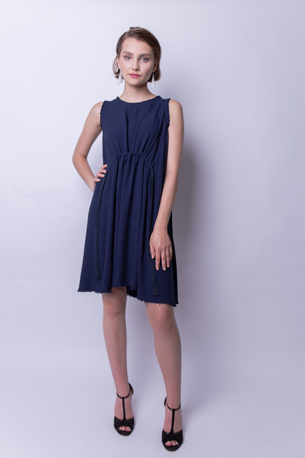 Rochia albastra DEHA este confectionata din vascoza si are un croi evazat, lejer. Aceasta rochie este extraordinar de confortabila si racoroasa putand fi asortata si accesorizata usor datorita simplitatii ei. Rochia are un croi baby doll lejer care se formeaza atunci cand se se strange cordonul.